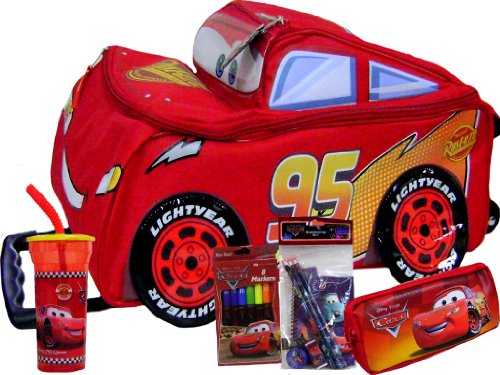 Car Shape Cars Kids Rolling Backpack and Stationey Value Pack