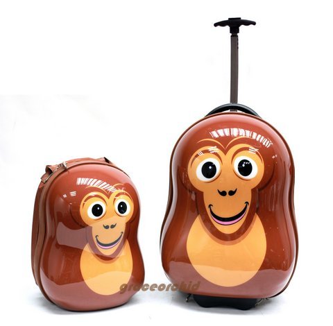 CUTIES AND PALS KIDS BOY GIRL 17" TRAVEL CARRY-ON ROLLING TROLLEY LUGGAGE + 13" SCHOOL BACKPACK - MONKEY