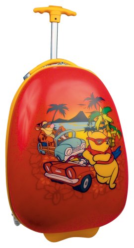 D234E-POOH CRUZER Features: -Made of ABS / Polycarbonate.-Beautifully lined interior with printed Disney patterns.-Zipper closure system.-Carry-on Approved.-Special LED lights within the wheels, these wheels light up when the case is rolled.-Frameless design.-Specially designed protruding inline wheels with metal bearings.-Internal handle system designed especially for children. Dimensions: -Overall Dimensions: 18'' H x 11'' W x 9'' D.