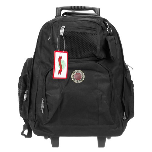 Durable Rolling Wheel School Backpack Hiking Bag Wheeled - 9 Colors Available (Black -1318)