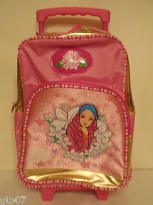 Fulla 13" Rolling backpack School Book-bag Gold Pink Muslim Toy