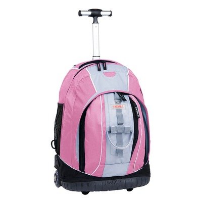J World 18" Rolling Backpack with Lightening Wheel-Pink/Grey