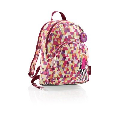 37528 Features: -Fun, fresh and functional.-Zip fastened upper and front compartment.-Length adjustable ergonomic straps.-Reinforced base with padded inside. Construction: -Constructed of 100pct polyester. Dimensions: -Dimensions: 17.3" H x 12.6" W x 4.75" D.