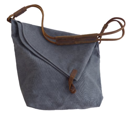 Otium 21001GRY Canvas Genuine Leather Cross Body Messenger Shoulder Bag Grey