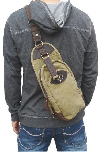 Otium 21105 Men's Canvas Genuine Leather Cross Body Chest Pack,Khaki