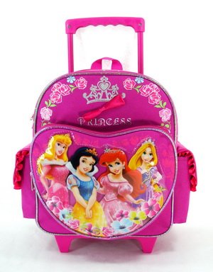 - School Combo - Disney 4 Princess Sharp Pink Ribbon Skirt and Center Ribbon Large Rolling Backpack and Princess Lunch Bag Set, Backpack Size Approximately 13"