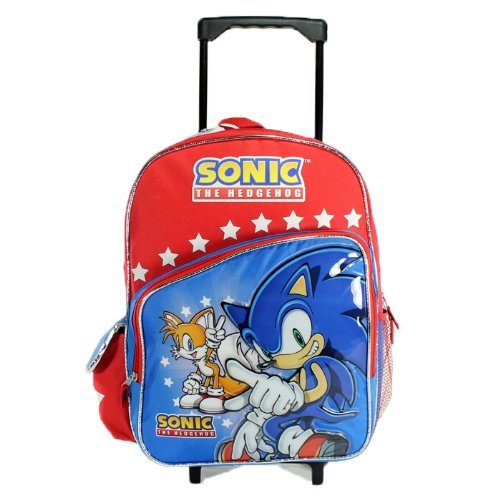 Sega Sonic The Hedgehog Large Rolling Roller Luggage Backpack Bag Tote 16" NEW STYLE