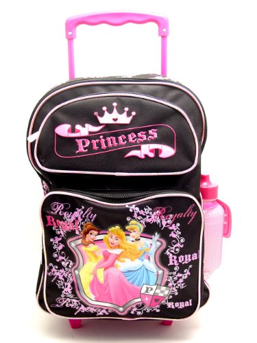 Walt Disney 3 Royal Princess Large Rolling Backpack with Bonus Water Bottle - Size Approximately 16" H X 14" W